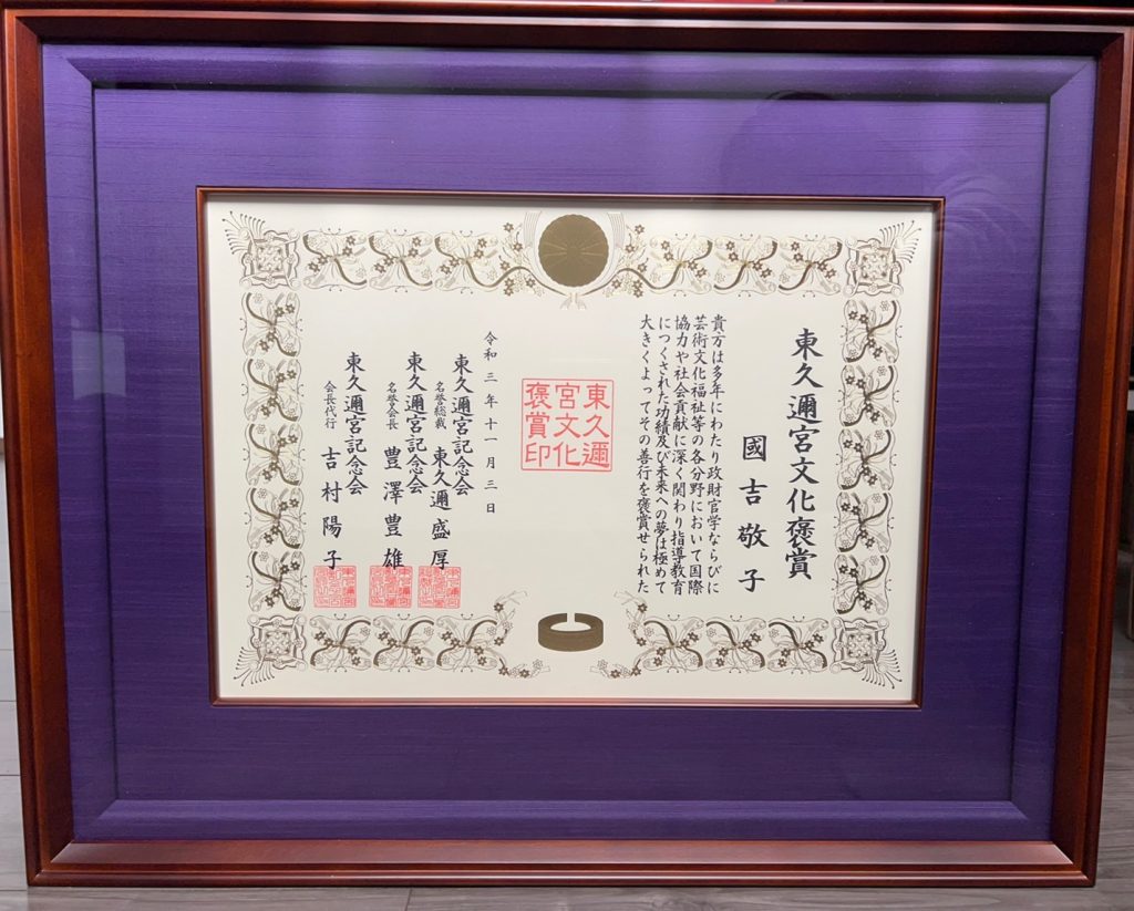 | 2021年11月 | 東久邇宮国際文化褒賞 受賞 |